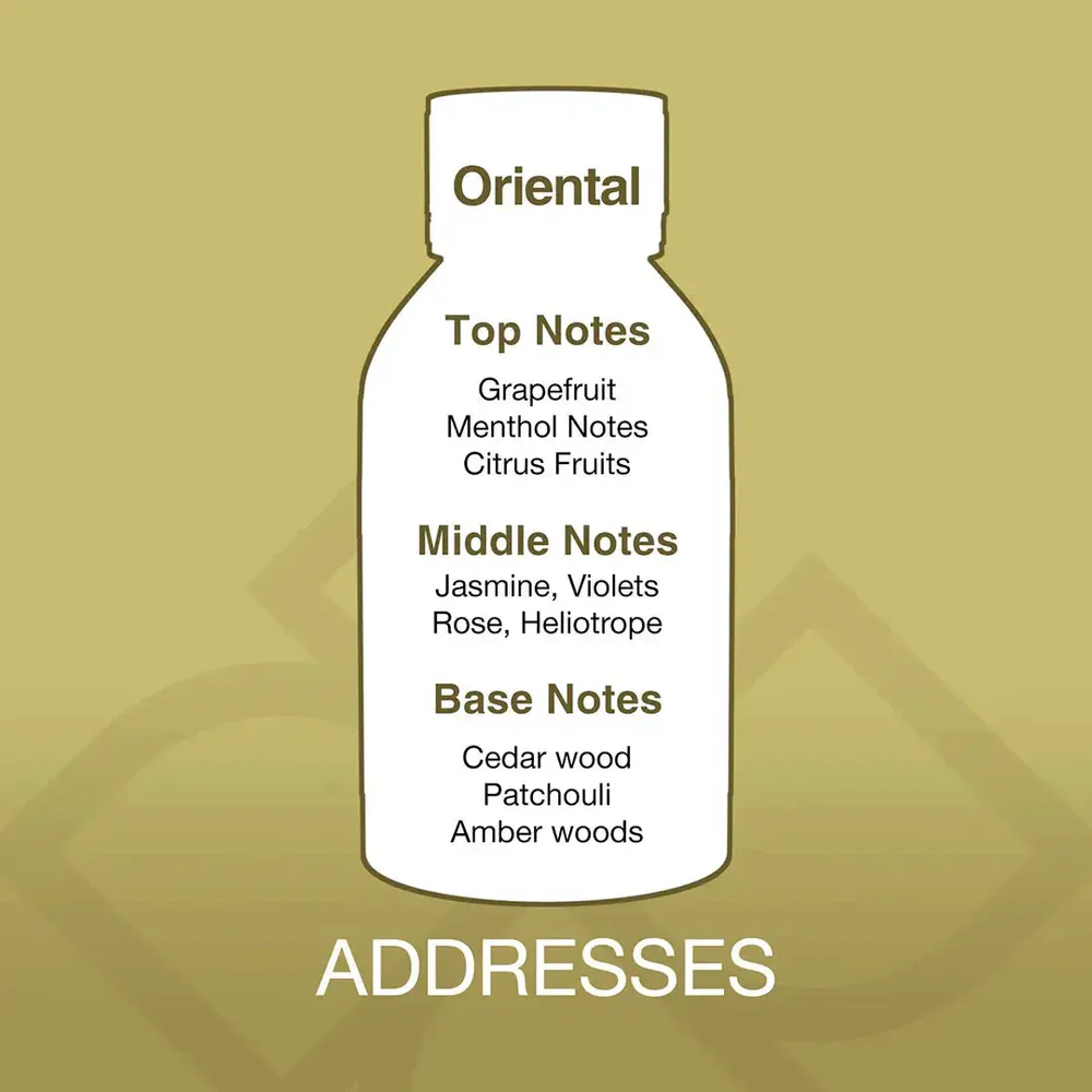 Addresses Aroma Blend is crafted to enhance ambiance in refined interiors. As part of our premium aroma diffuser oils collection, it delivers a balanced and elegant scent suitable for homes and offices.