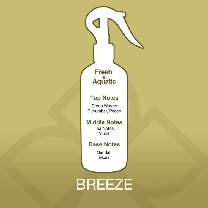 Discover the refreshing power of Breeze Aroma Mist Room Spray, designed to instantly uplift your space with a clean and airy fragrance. This premium room spray features crisp notes of cucumber and soft peach, creating a light, refreshing scent that eliminates unwanted odors without overpowering your environment.