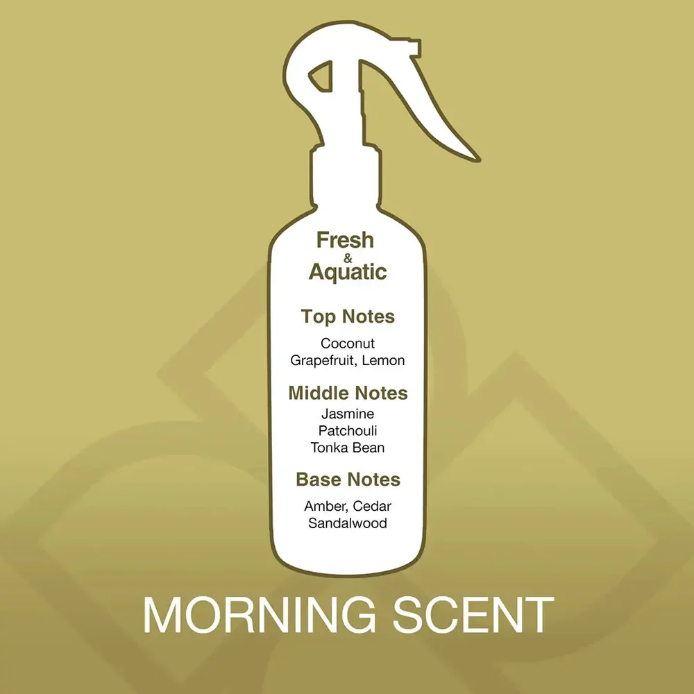 Crafted as a luxury room spray, Morning Scent works beautifully as a refined room freshener, refreshing living rooms, bedrooms, and shared spaces with a long-lasting and energizing aroma. The fragrance feels light, crisp, and perfectly balanced without being overpowering.
