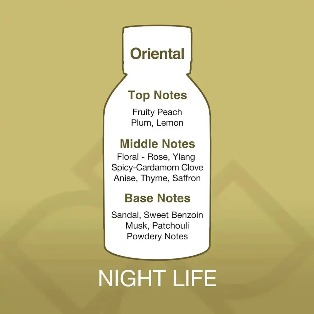 Night Life Aroma Blend is crafted for those who love bold, energetic atmospheres. This premium aroma diffuser oils formula delivers a vibrant, modern fragrance that transforms any space into a lively and stylish environment.