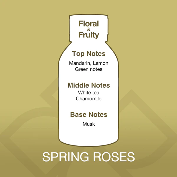 Crafted with premium-quality ingredients, Spring Roses aroma diffuser oils are ideal for use with aroma diffusers and scenting devices, offering consistent fragrance diffusion without overpowering the space. The delicate balance of fresh petals and gentle floral notes makes this blend perfect for relaxation, wellness routines, and everyday ambiance.