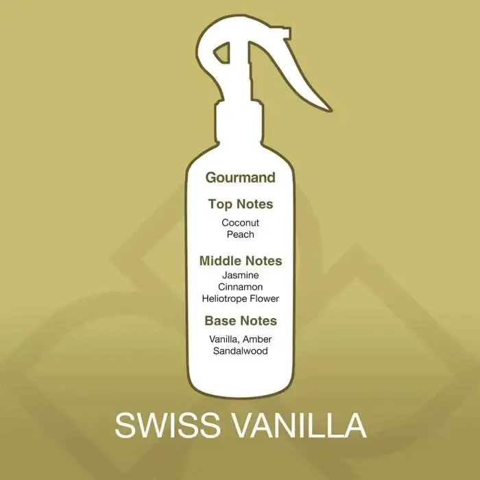 Swiss Vanilla Room Spray is a premium aroma mist designed to fill your space with a warm, creamy, and comforting fragrance. Blending smooth vanilla with soft coconut and gentle fruity notes, this scent creates a cozy and inviting atmosphere in any room.